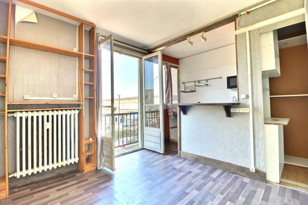 Appartement rare situé 151 rue de belleville, nécessitant des travaux de remise en fonction, dans une résidence calme et sécurisé. D’une superficie d’environ 22m² il benéficie d’un agencement optimal permettant une configuration en T2 avec une cuisine, une chambre, un séjour et une salle d’eau avec WC intégré. Ce bien est complété d’une cave.